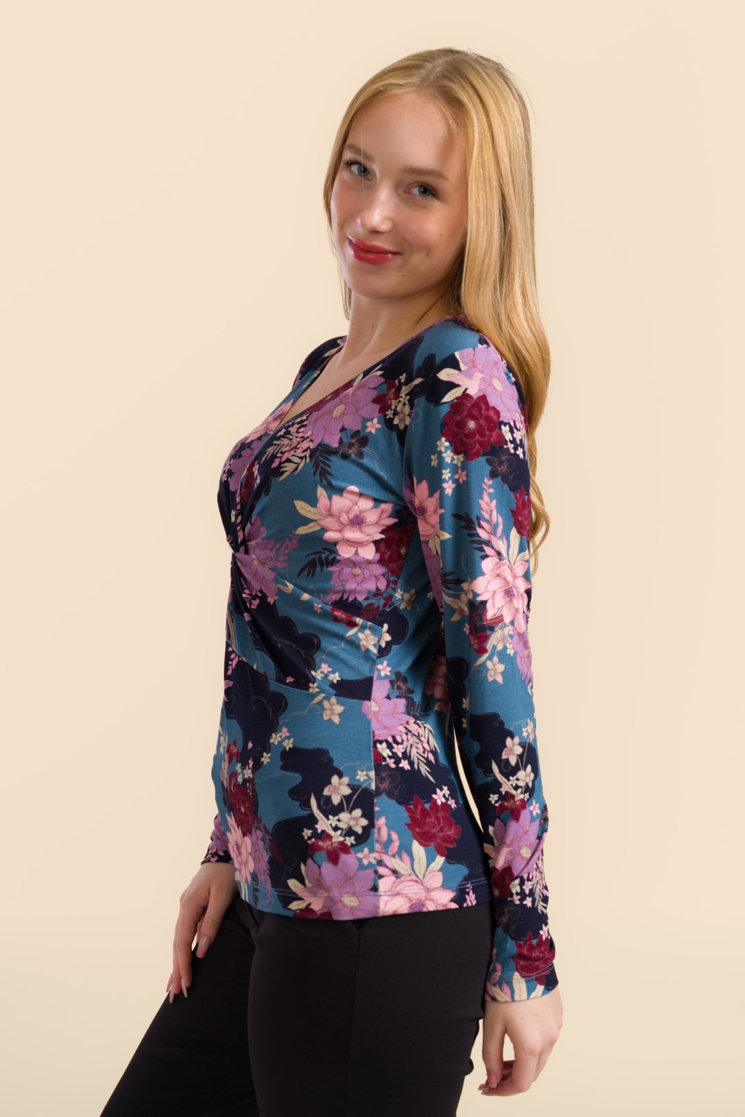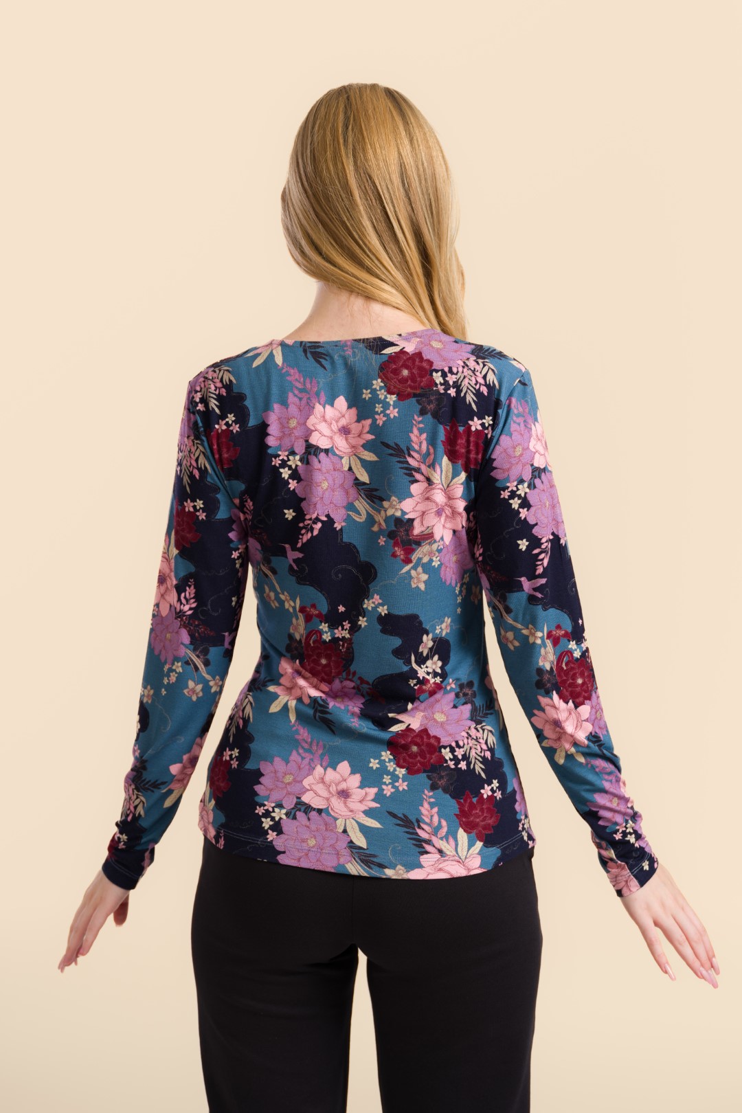 Een angela top uit de Oriental Bird-collectie: modern, vrouwelijk en moeiteloos te stylen.