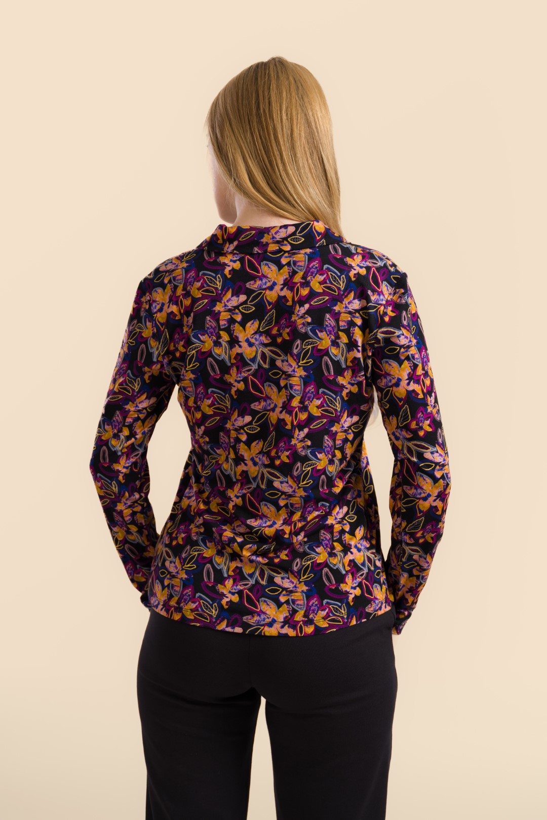 De Anna Blouse is een klassieke blouse met een speelse bloemenprint in warme herfsttinten. Elegant en veelzijdig – ideaal voor werk én vrije tijd.