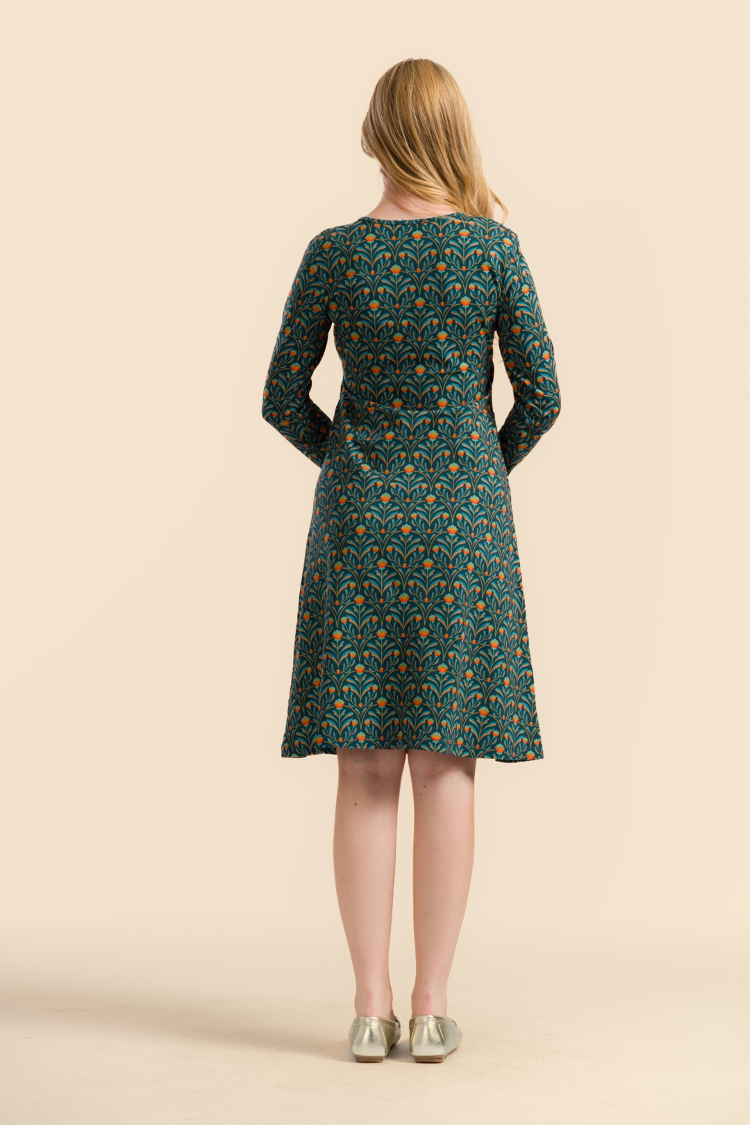 CHRISSY CROSS DRESS BAROCK FLOWER GREEN