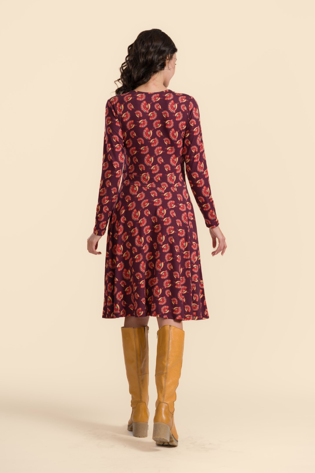 De Daisy Dress is een speelse en vrouwelijke midi-jurk. De rode bloemenprint geeft een romantische uitstraling met een vleugje retro chic.