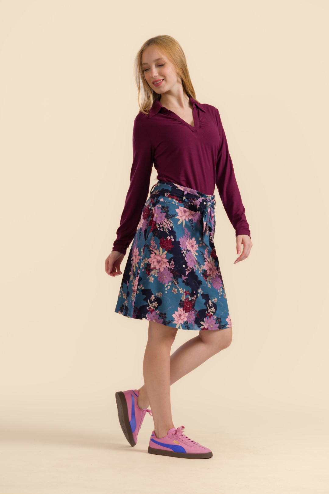 Een demi skirt uit de Oriental Bird-collectie: modern, vrouwelijk en moeiteloos te stylen.
