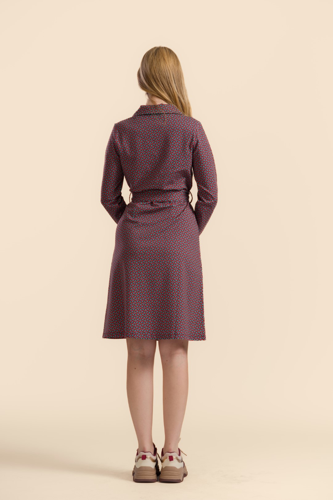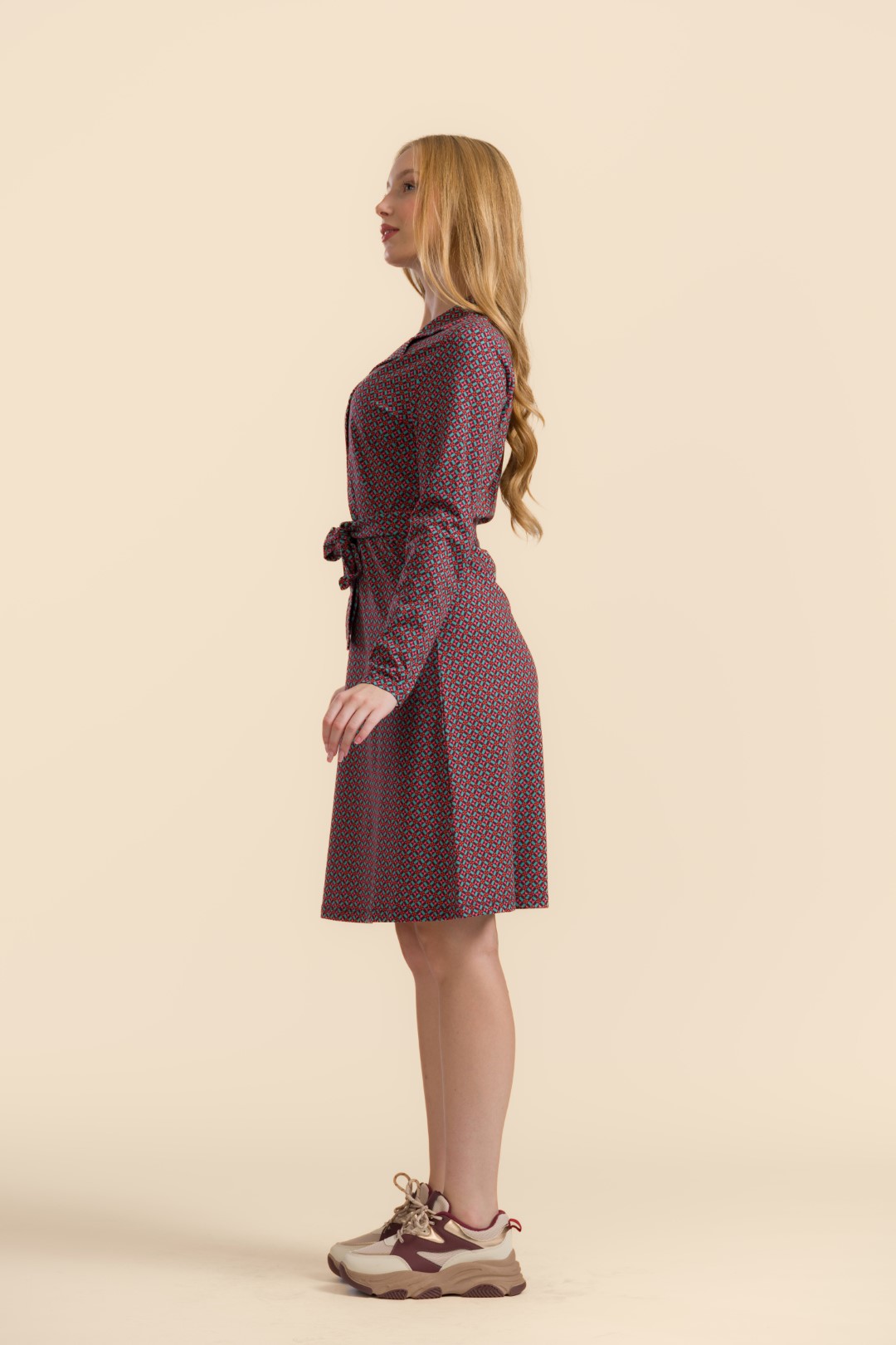 De Monique Dress – Graphic Mill combineert tijdloze elegantie met een modern grafisch patroon. Deze overhemdjurk heeft een rechte pasvorm die met de strikceintuur in de taille mooi te stylen is voor een vrouwelijke uitstraling.