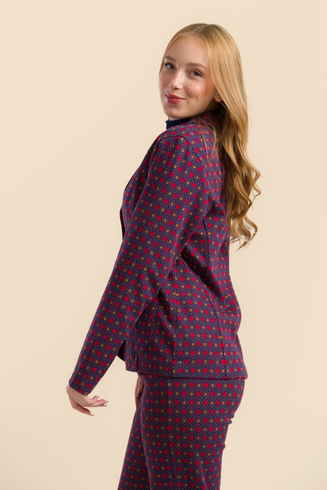 Een nova blazer uit de Jacquard Hearts-collectie: modern, vrouwelijk en moeiteloos te stylen.
