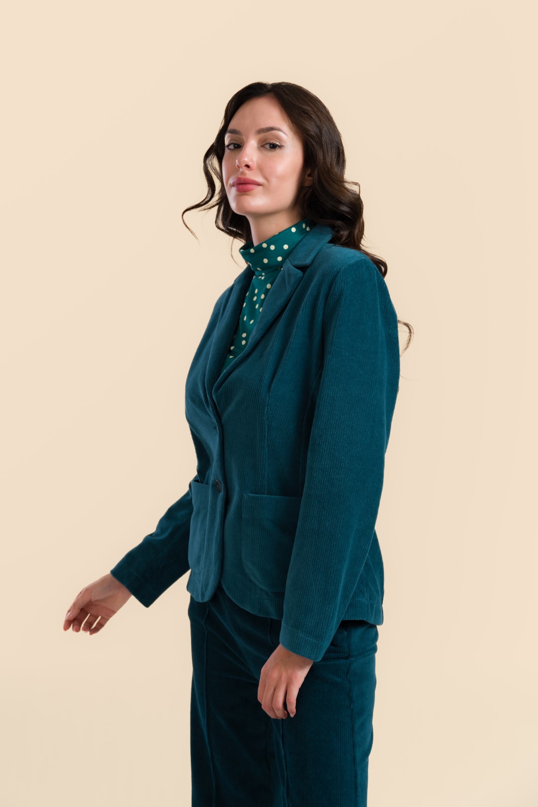 NOVA BLAZER RIB VELOUR PETROL