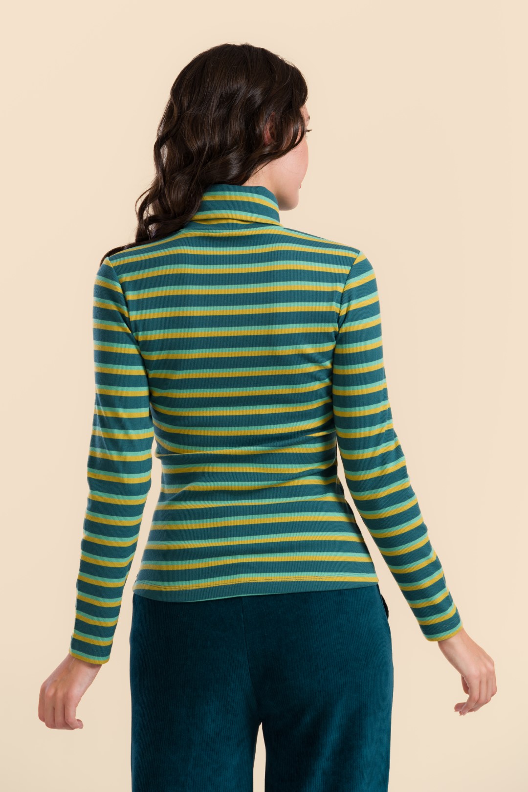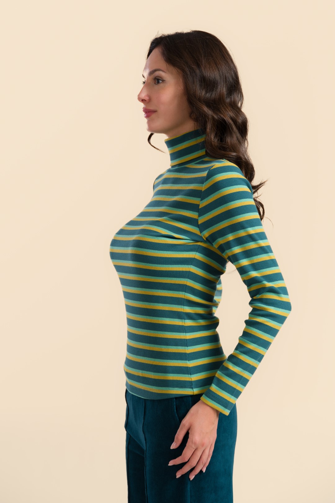 Een ruby top uit de Deep Teal Stripes-collectie: modern, vrouwelijk en moeiteloos te stylen.