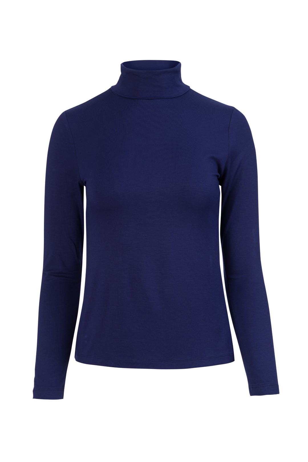 De Ruby Top LS – Ecovero Plain Blue is een stijlvolle coltrui in een tijdloze, diepblauwe tint. Deze top is gemaakt van duurzame Ecovero viscose, wat zorgt voor een heerlijk zachte en ademende stof met een lichte stretch. Hierdoor sluit hij mooi aan en biedt hij optimaal draagcomfort.