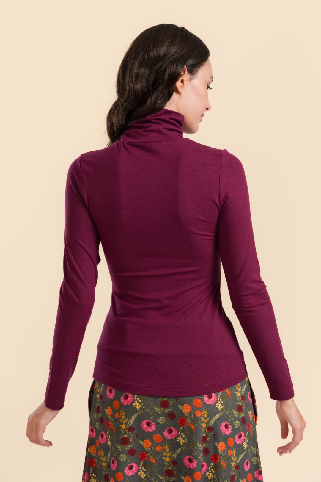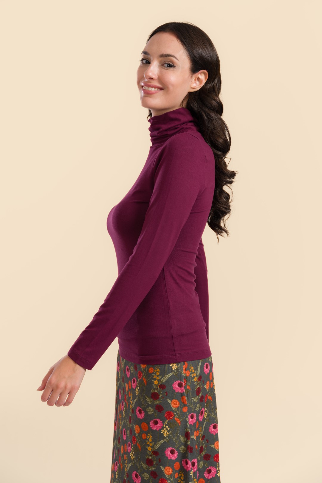 De Ruby Top LS – Ecovero Plain Bordeaux is een elegante coltrui in een diepe, warme bordeauxkleur. Gemaakt van duurzame Ecovero viscose, voelt de stof heerlijk zacht aan en is ademend en comfortabel met een vleugje stretch. Perfect om zowel casual als chic te dragen.