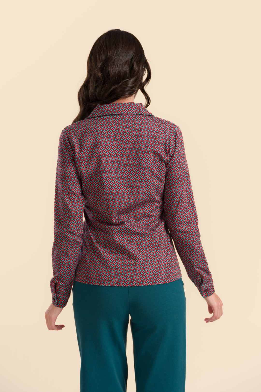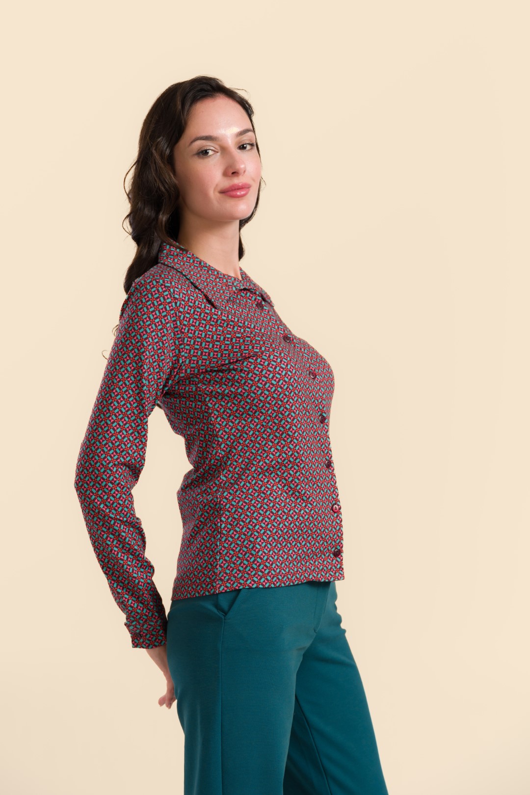 Een sara blouse uit de Graphic Mill-collectie: modern, vrouwelijk en moeiteloos te stylen.