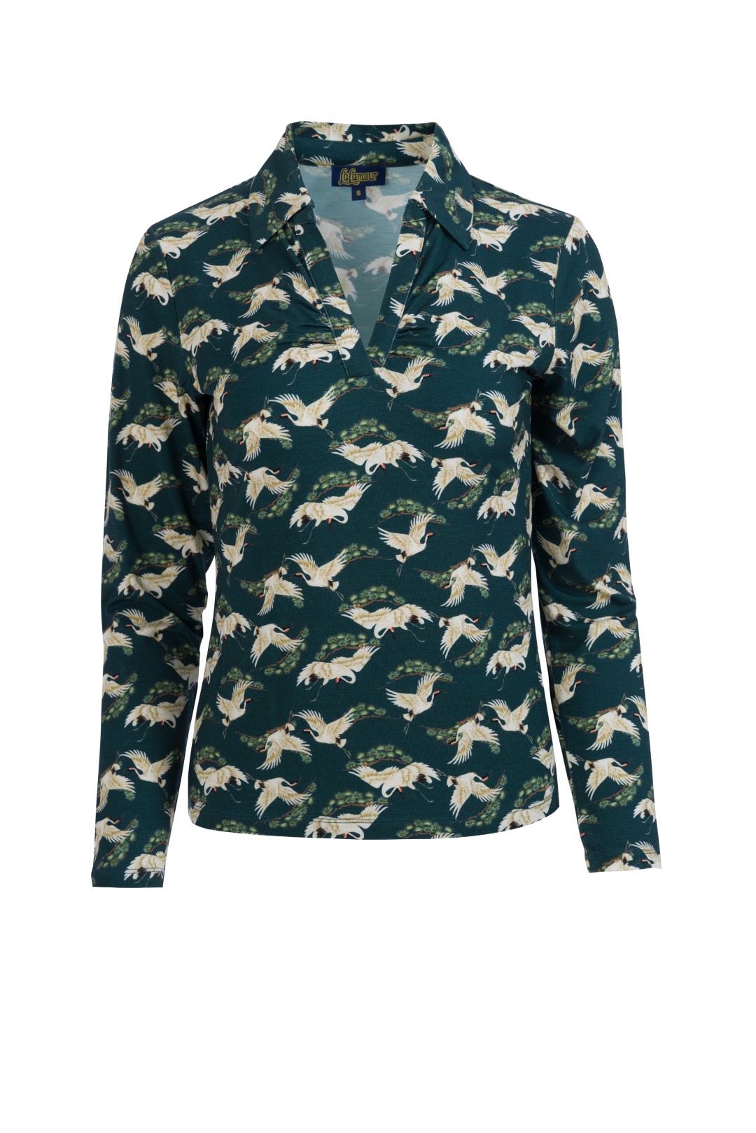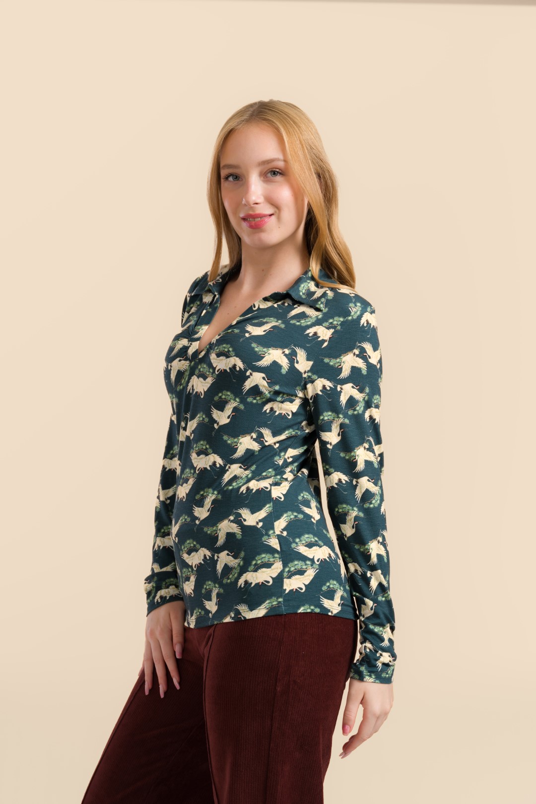 SUZY TOP LONG SLEEVE CRANE DANCE PETROL