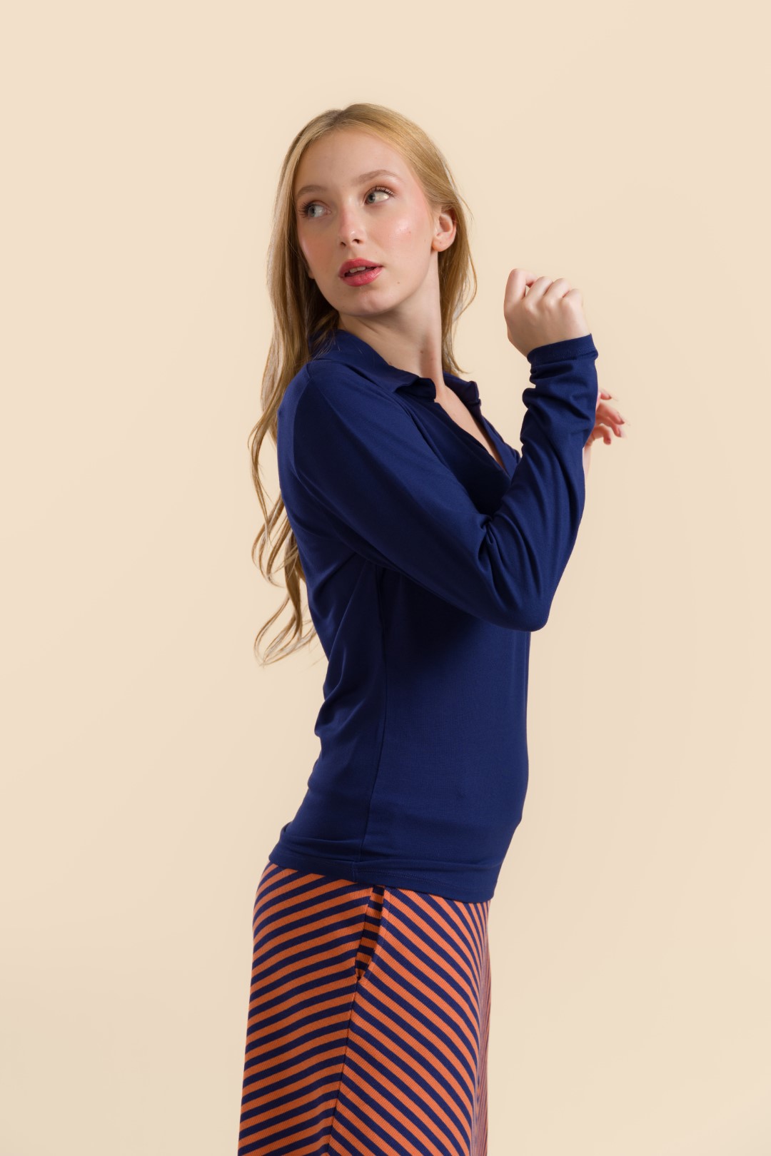 SUZY TOP LONG SLEEVE ECOVERO PLAIN BLUE
