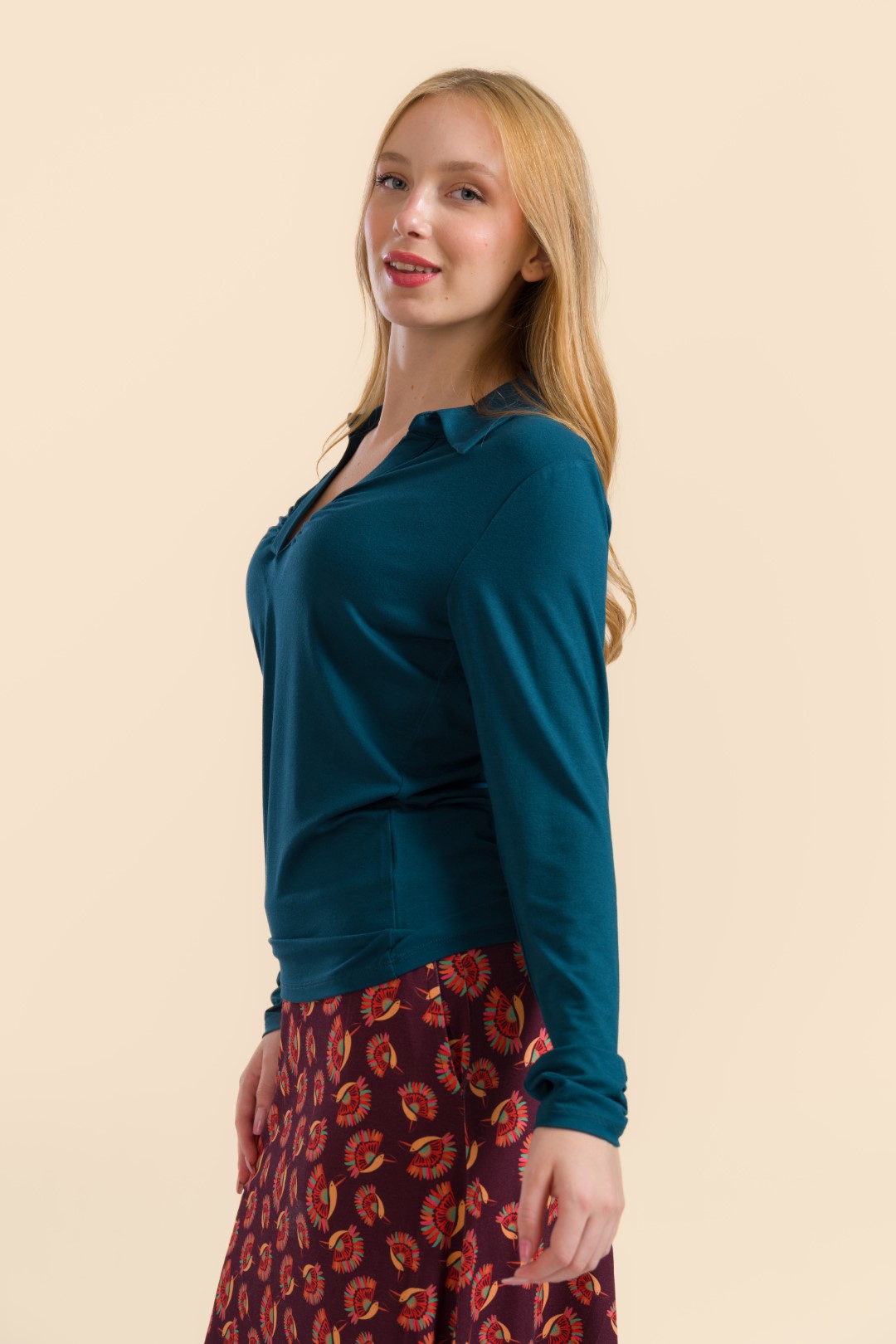 SUZY TOP LONG SLEEVE ECOVERO PLAIN PETROL