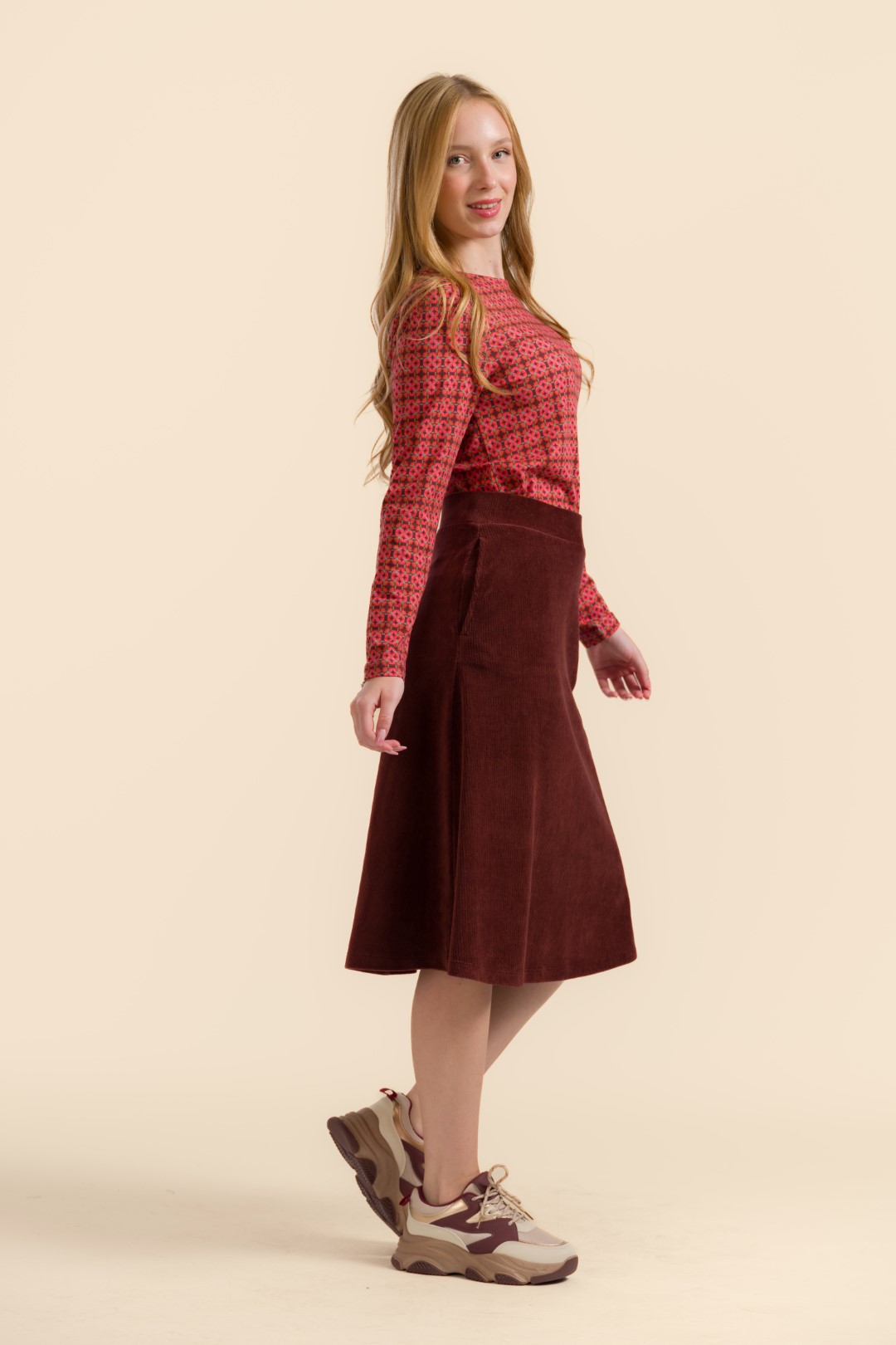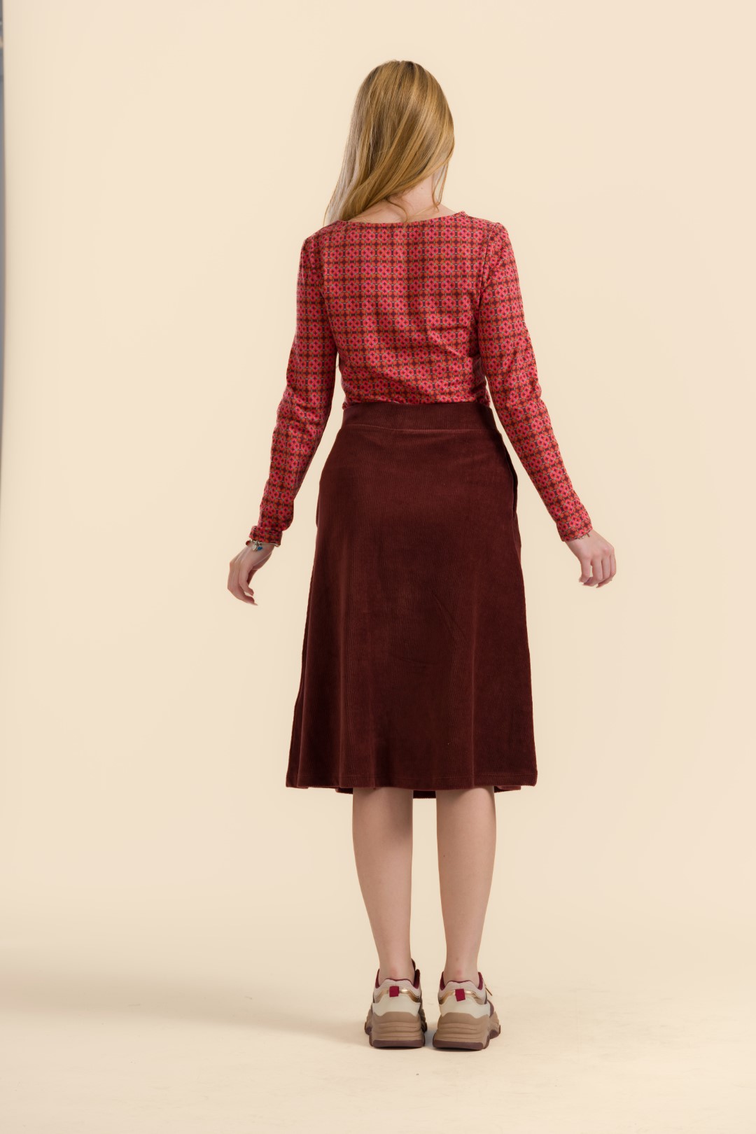 Een holly skirt uit de Rib Velour-collectie: modern, vrouwelijk en moeiteloos te stylen.