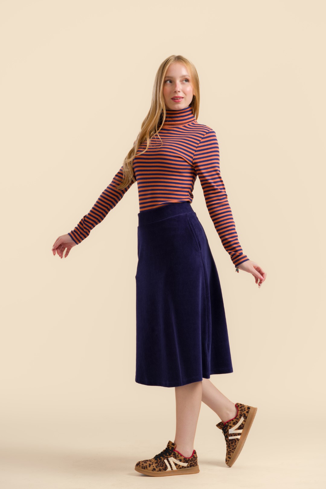 Een holly skirt uit de Rib Velour-collectie: modern, vrouwelijk en moeiteloos te stylen.