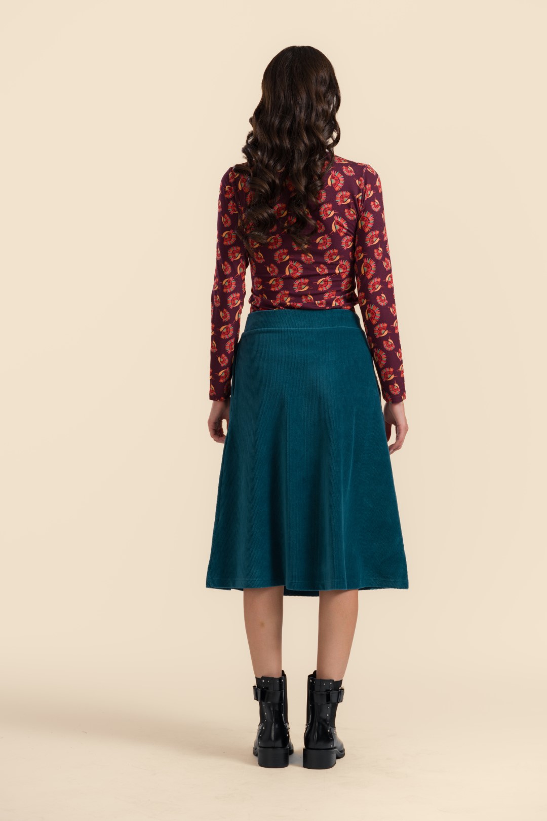Een holly skirt uit de Rib Velour-collectie: modern, vrouwelijk en moeiteloos te stylen.