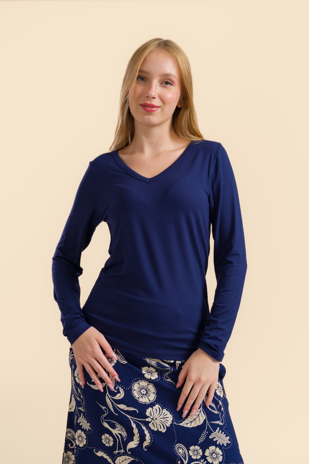 De Lynn Top – Deep Blue is een stijlvolle basic met een rijke kleur die elegantie en eenvoud combineert. Dankzij de V-hals en de flatterende pasvorm is deze top moeiteloos te dragen bij zowel casual als geklede looks.